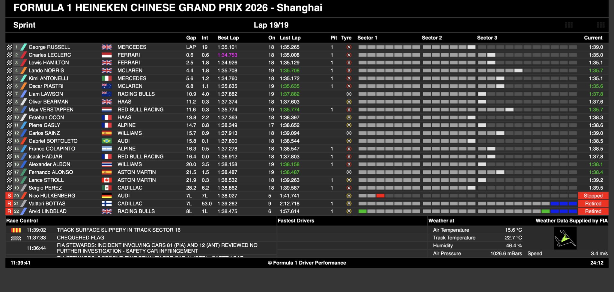 Carrera Esprint Gran Premio de Fórmula 1 China circuito de Shanghái / Resultados Mar 14, 2026 mamenf1