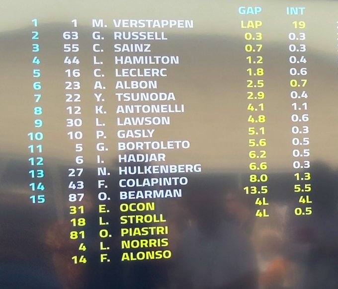 Parrilla de salida carrera Sprint Gran Premio de Fórmula 1 Estados Unidos Austin / Resultados Oct 18, 2025 mamenf1