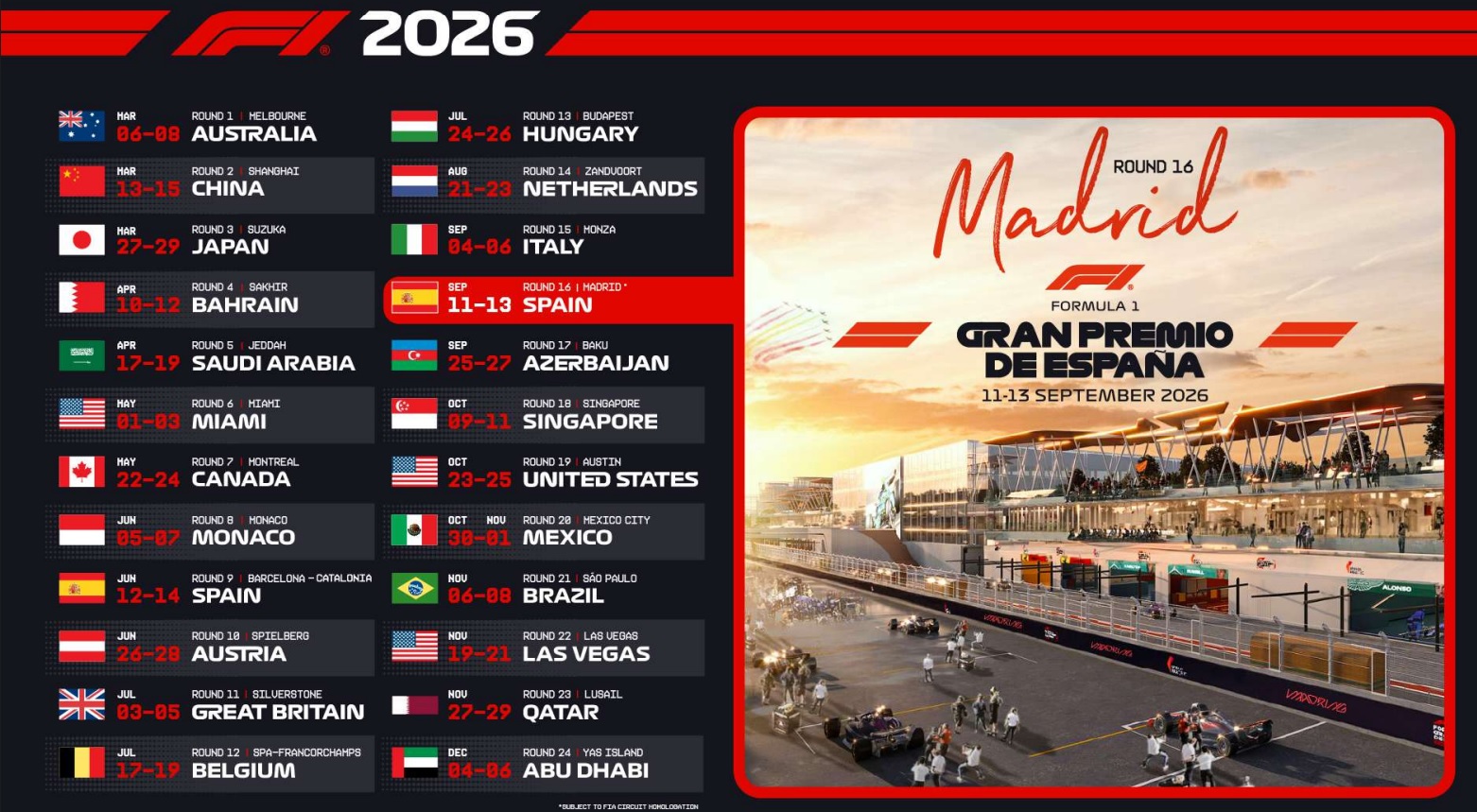 Estos horarios también confirman que la temporada 2026 de F1 contará con dos grandes premios que se disputarán el sábado; el GP de Las Vegas, que se ha llevado a cabo en sábado desde 2023, mientras que el GP de Azerbaiyán se traslada al sábado para evitar que coincida con un día de luto nacional.